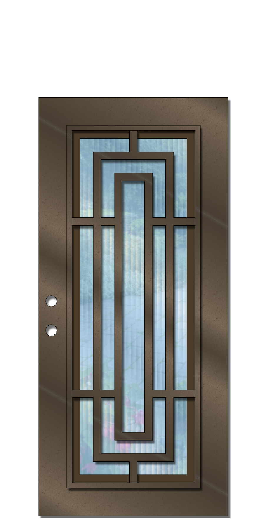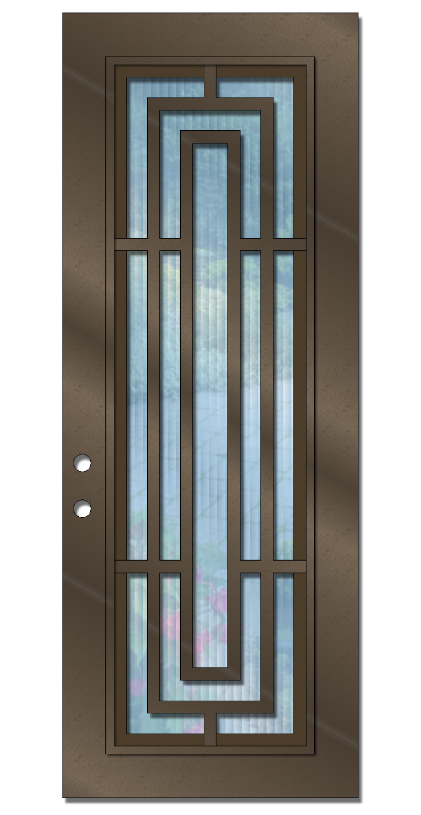 The example photo shown is of a 3' X 8' Harper. It is powder coated Rust Texture and has Bronze Tint glass. However, when ordering you will be able to choose your preferred powder coat color & glass texture along with one of the 4 door size (seen below) you require.