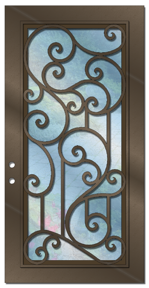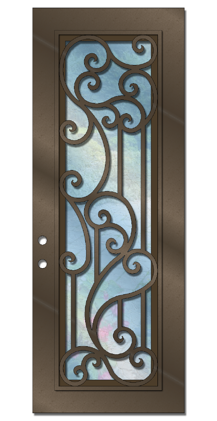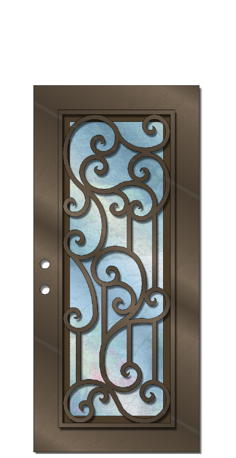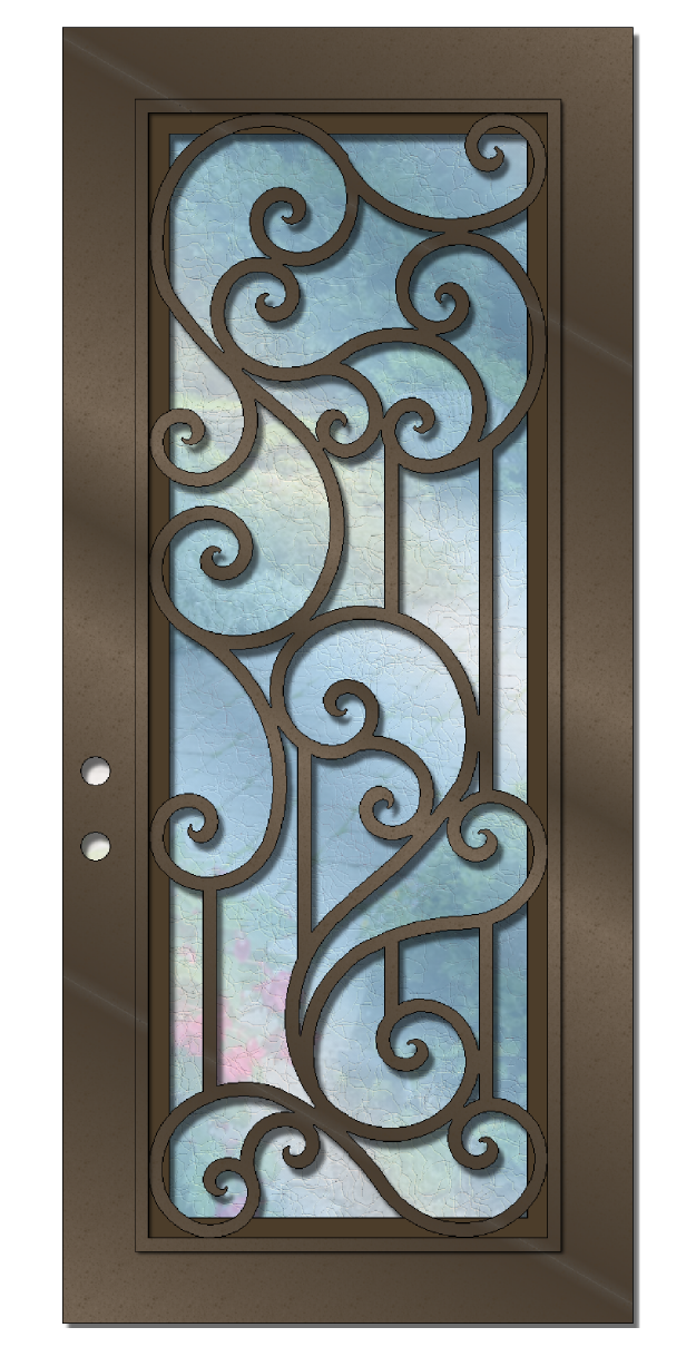 The example photo shown is of a 3' X 8' Janeva. It is powder coated Terra Brown (color discontinued) and has Aqua Tex glass. However, when ordering you will be able to choose your preferred powder coat color & glass texture along with one of the 4 door size (seen below) you require.