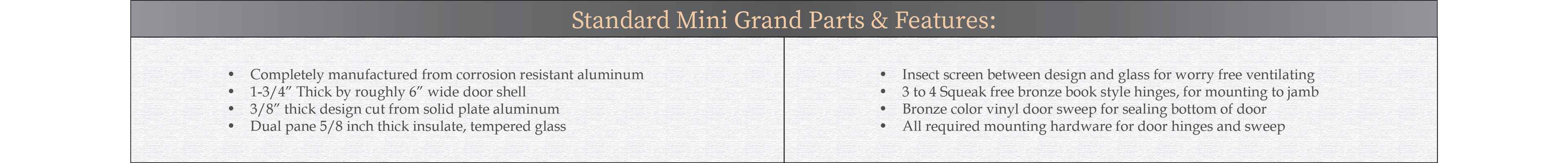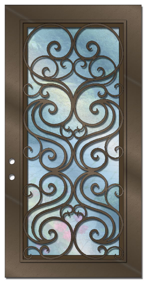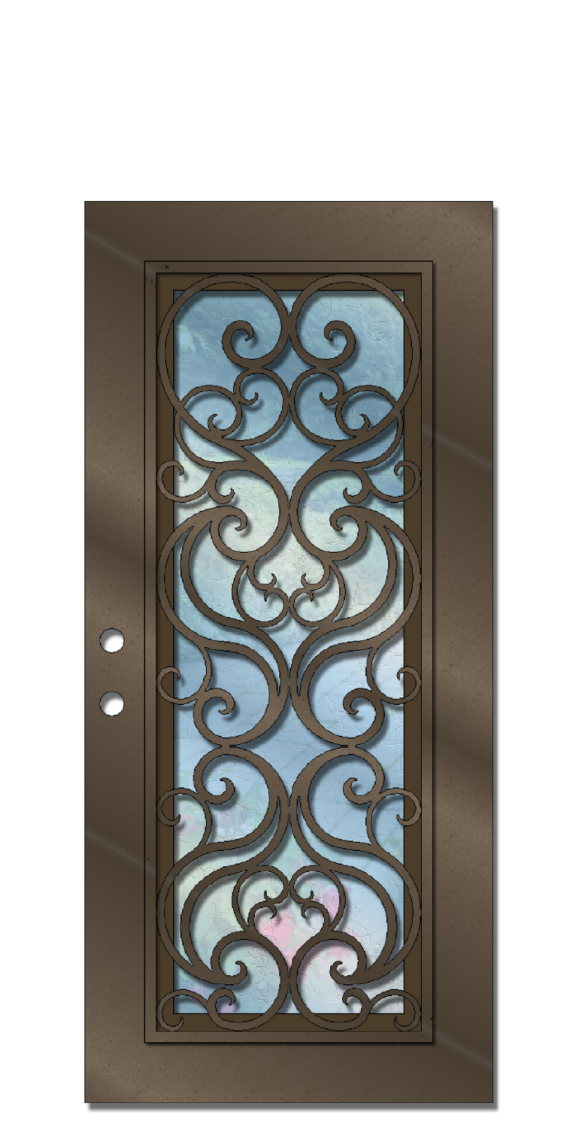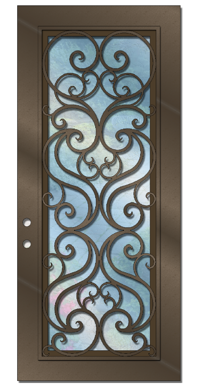 The example photo shown is of a 3' X 8' Olivie. It is powder coated Oil Rub Bronze and has Aqua Tex glass. However, when ordering you will be able to choose your preferred powder coat color & glass texture along with one of the 4 door size (seen below) you require.